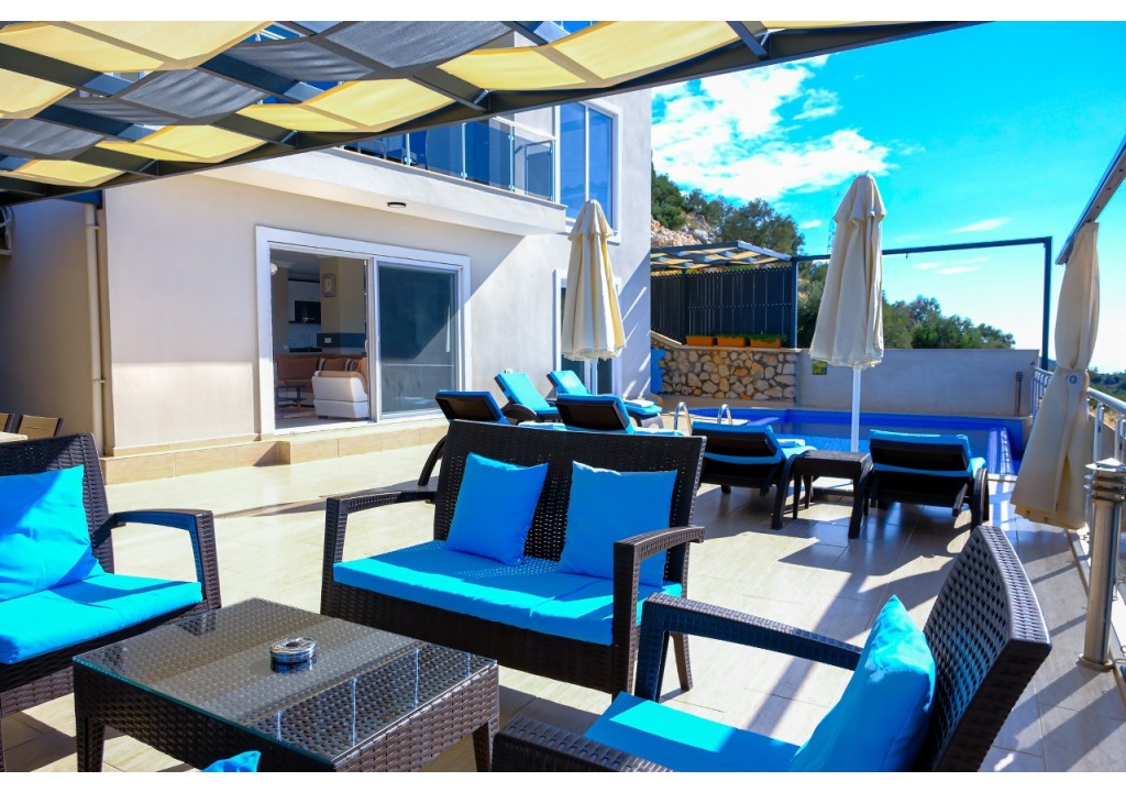 SALON: Havuz ve deniz manzaralı oturma alanı.