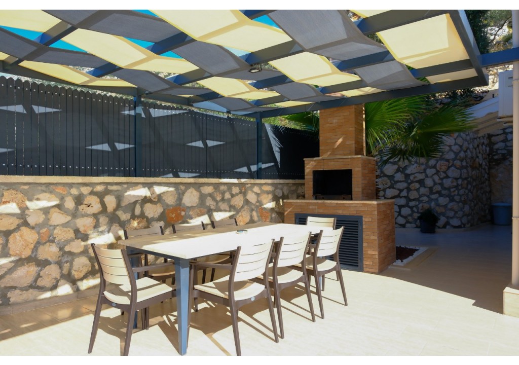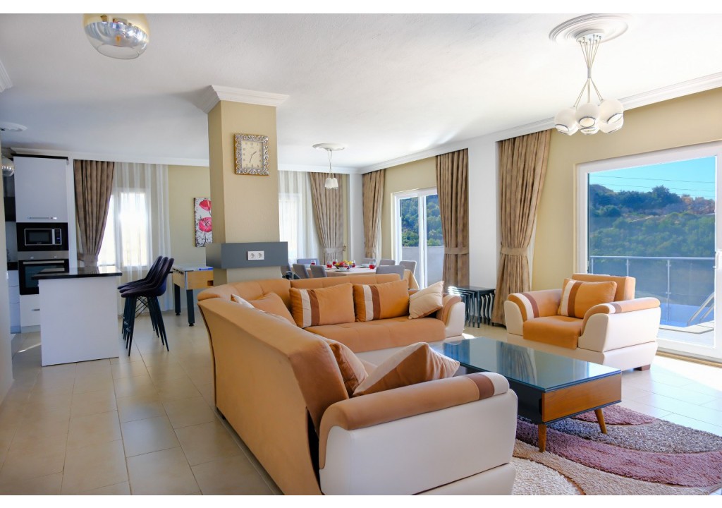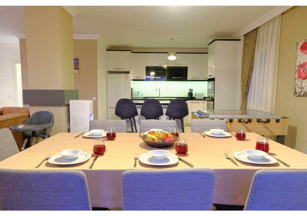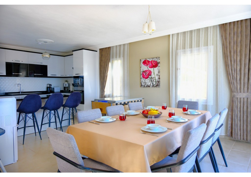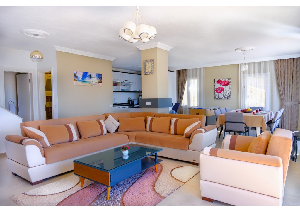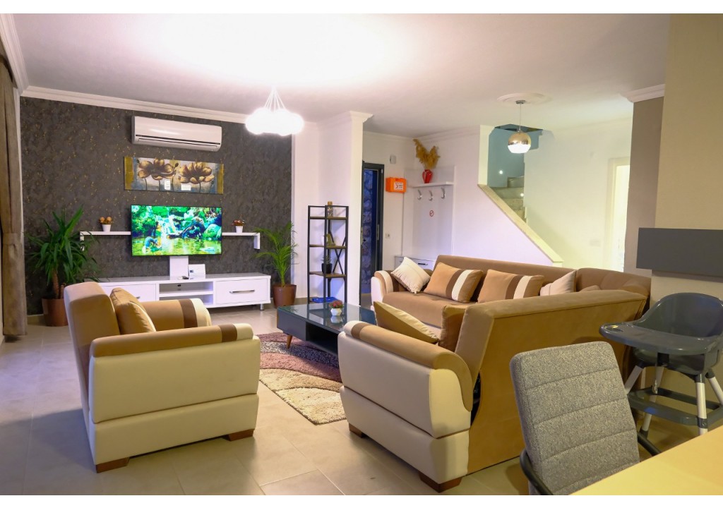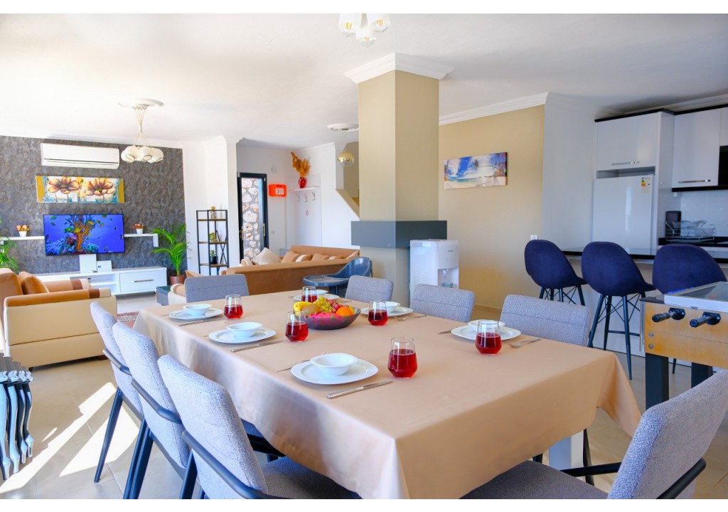 Detayları; Oturma grubu, Uydu TV (LCD), Klima, 8 kişilik yemek masası, Havuz terasına çıkış.
