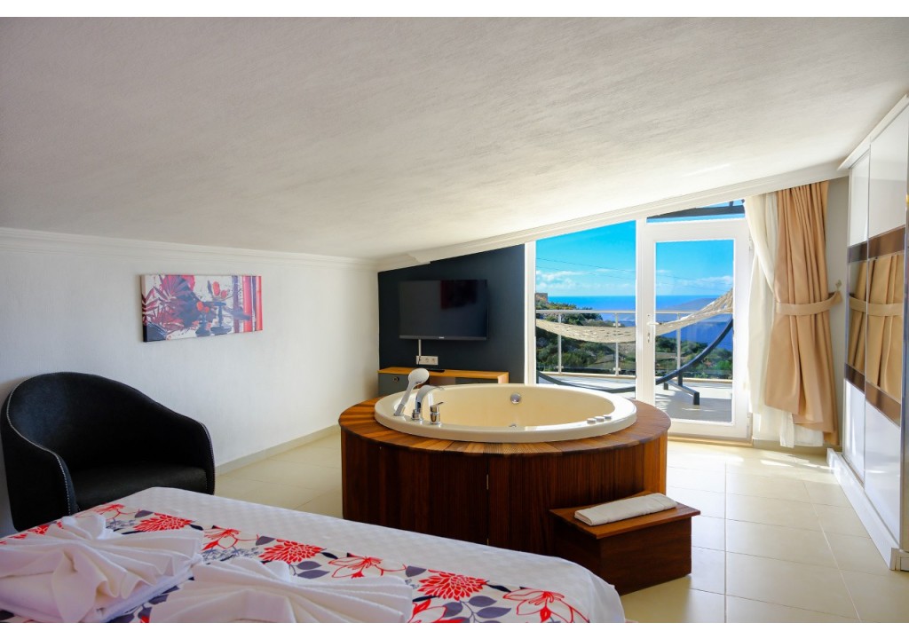 Detayları; Çift kişilik yatak, elbise dolabı, makyaj masası, klima, jakuzi, banyo ve tuvalet bulunmaktadır.