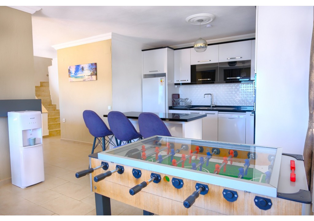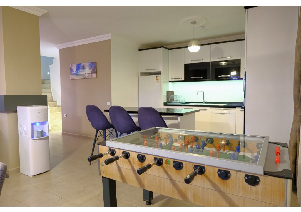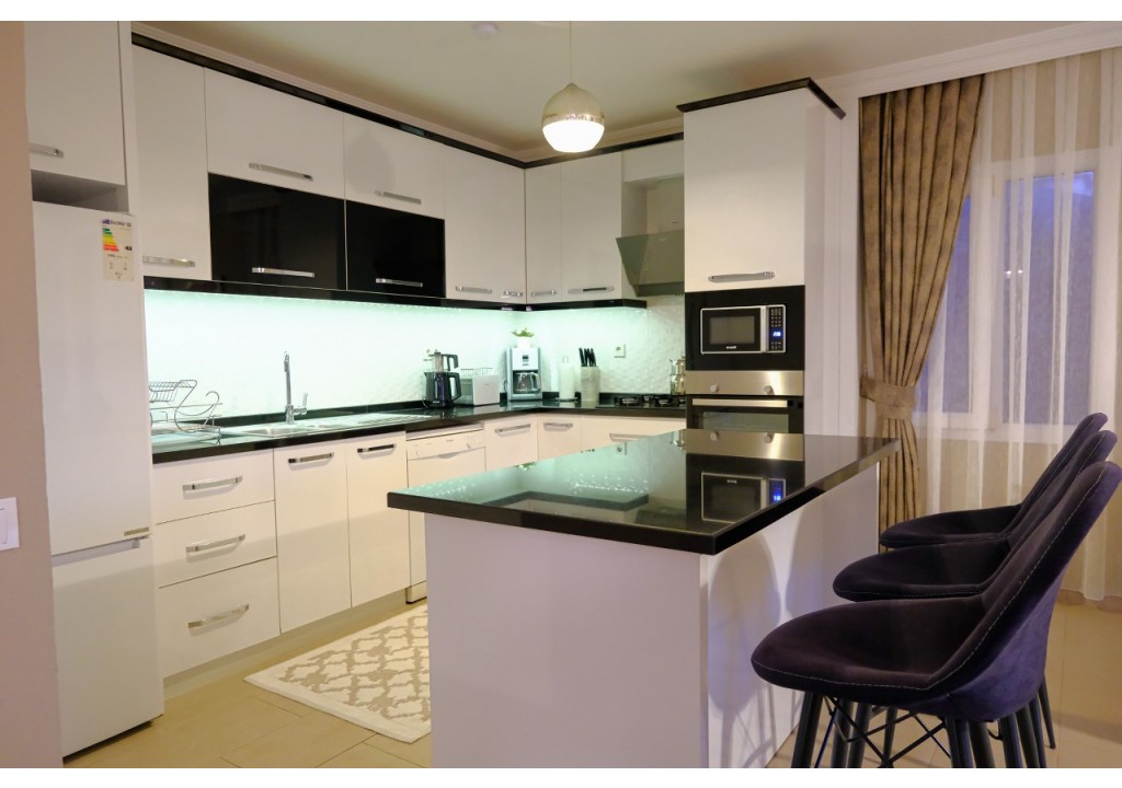 Detayları; Buzdolabı, bulaşık makinesi, ankastre set, mikrodalga fırın, kettle, 8 kişilik yemek takımı, ve tüm mutfak gereçleri yeteri kadar bulunmaktadır.