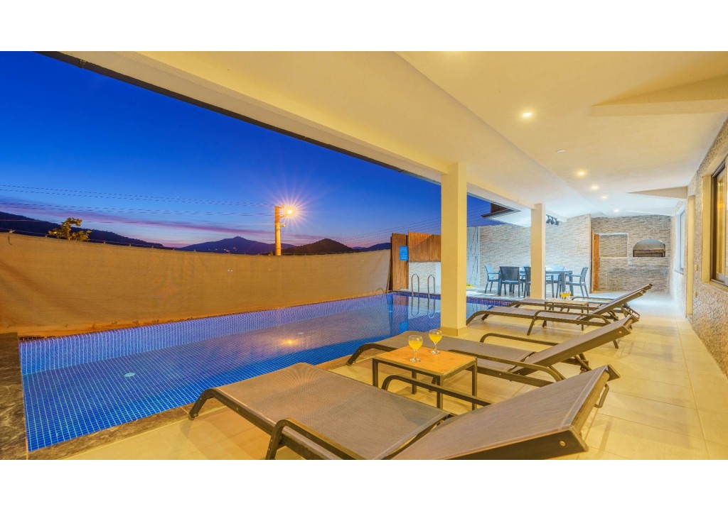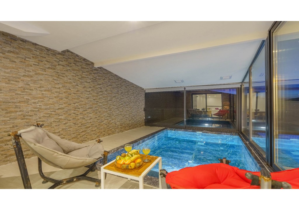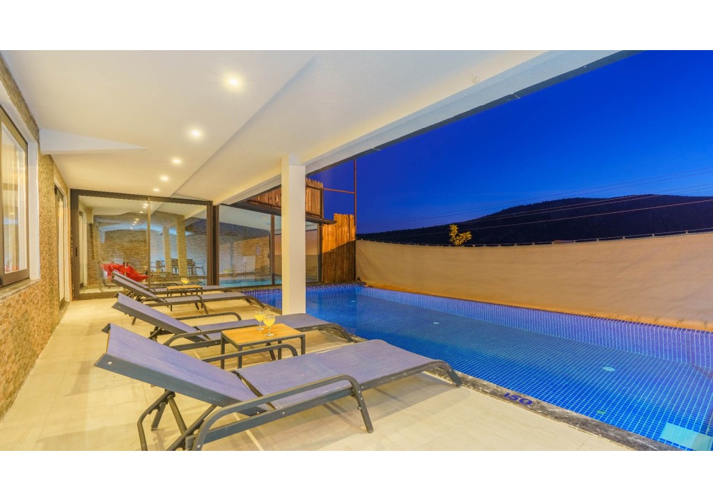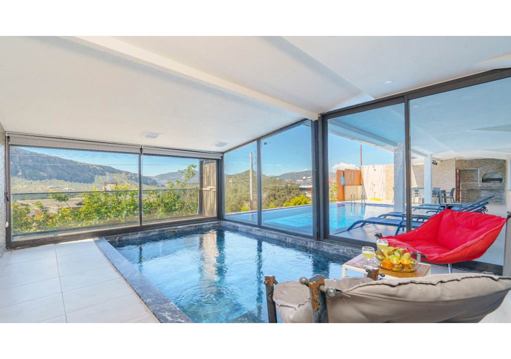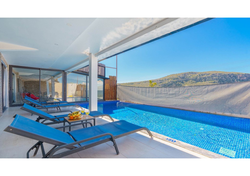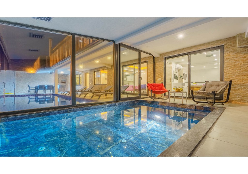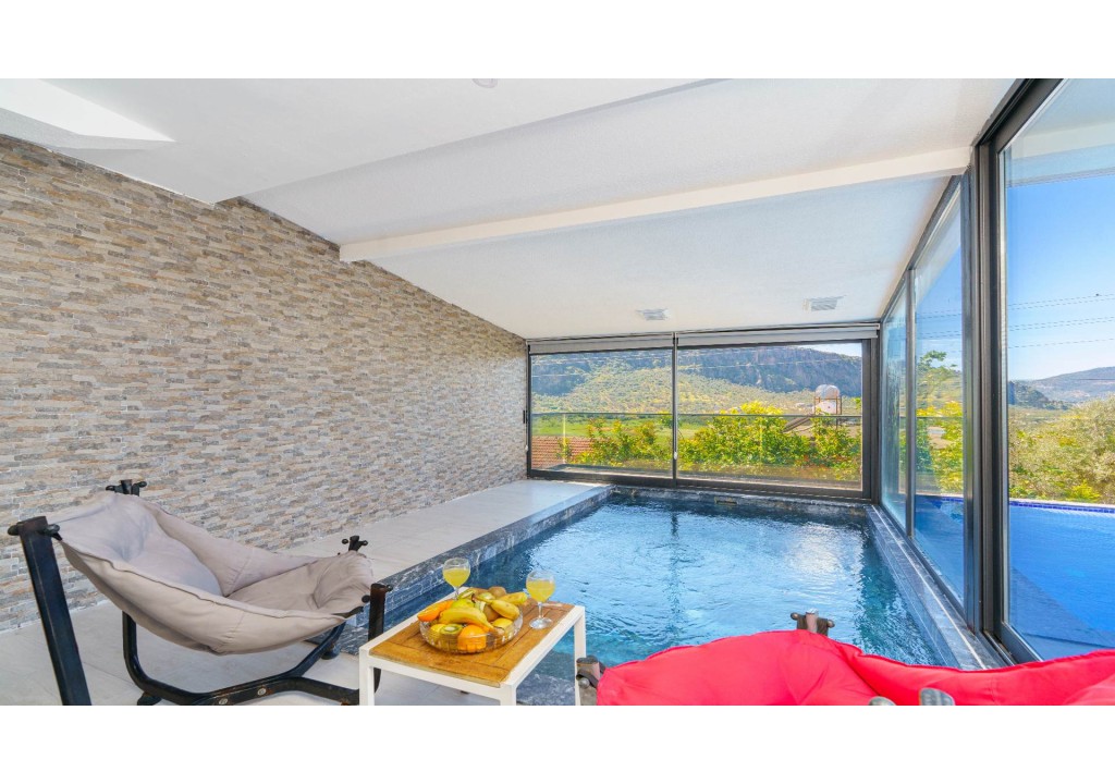 Kalkan’ın Ulugöl mevkiinde yer alan Villa Yaz 3, balayı çiftleri ve çekirdek aileler için ideal bir seçenektir. Kapalı ısıtmalı havuzu sayesinde kış aylarında da keyifli ve huzurlu bir tatil deneyimi yaşayabilirsiniz.