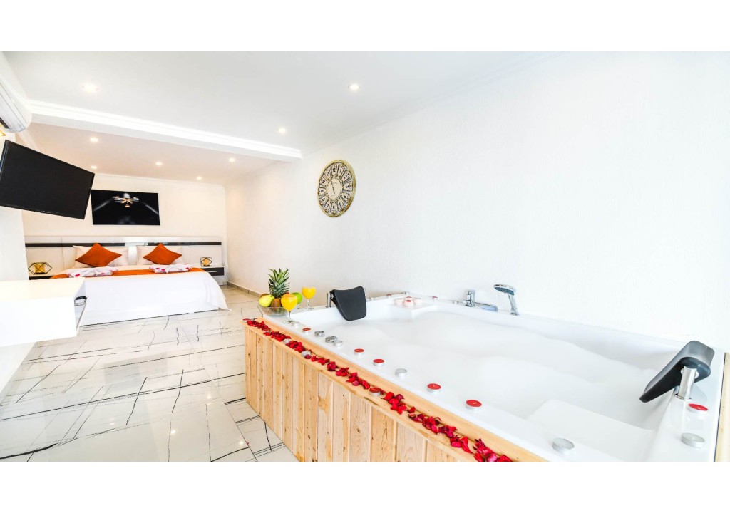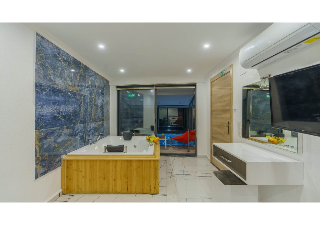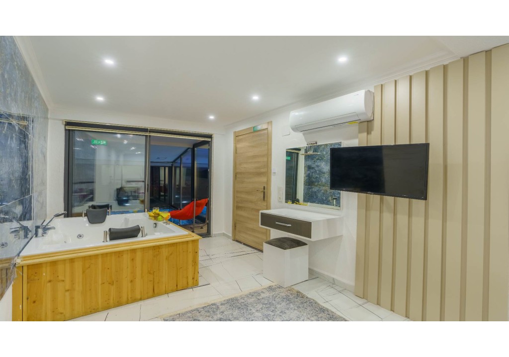 Detayları; Çift kişilik yatak, makyaj masası, komodin, klima, elbise dolabı, banyo ve tuvalet, jakuzi bulunmaktadır.