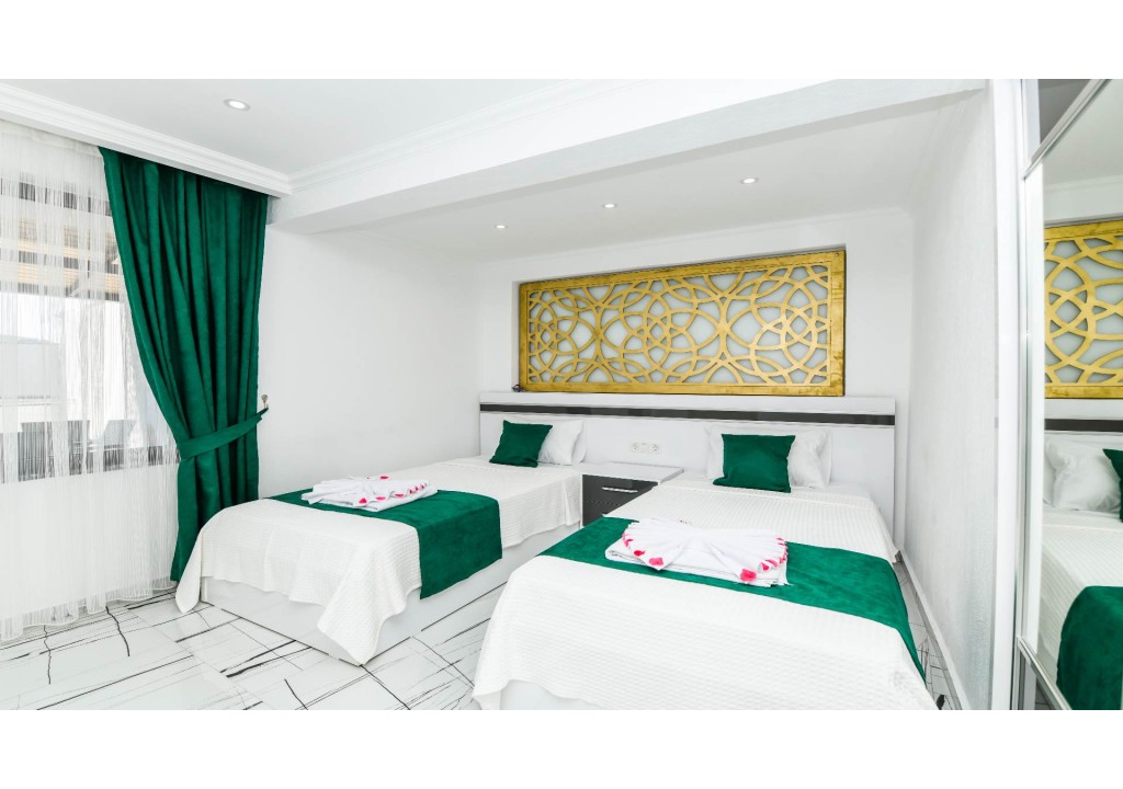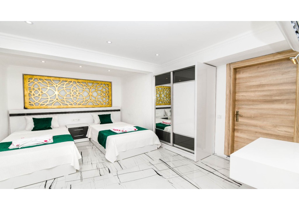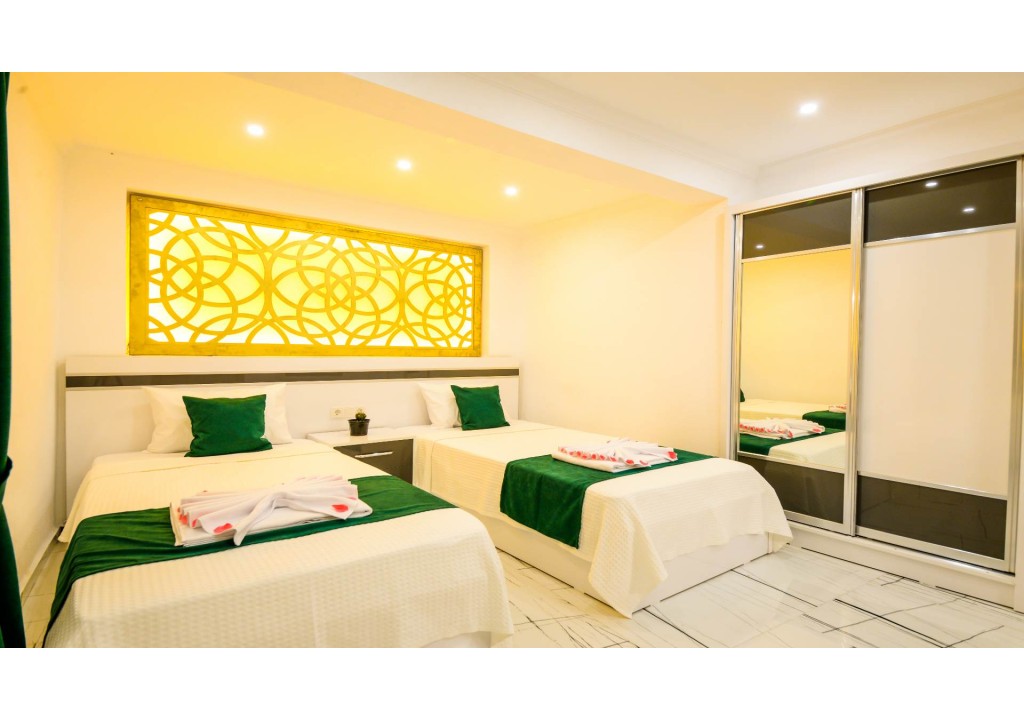 Detayları; İki adet tek kişilik yatak, makyaj masası, komodin, klima, elbise dolabı, banyo ve tuvalet, bulunmaktadır.