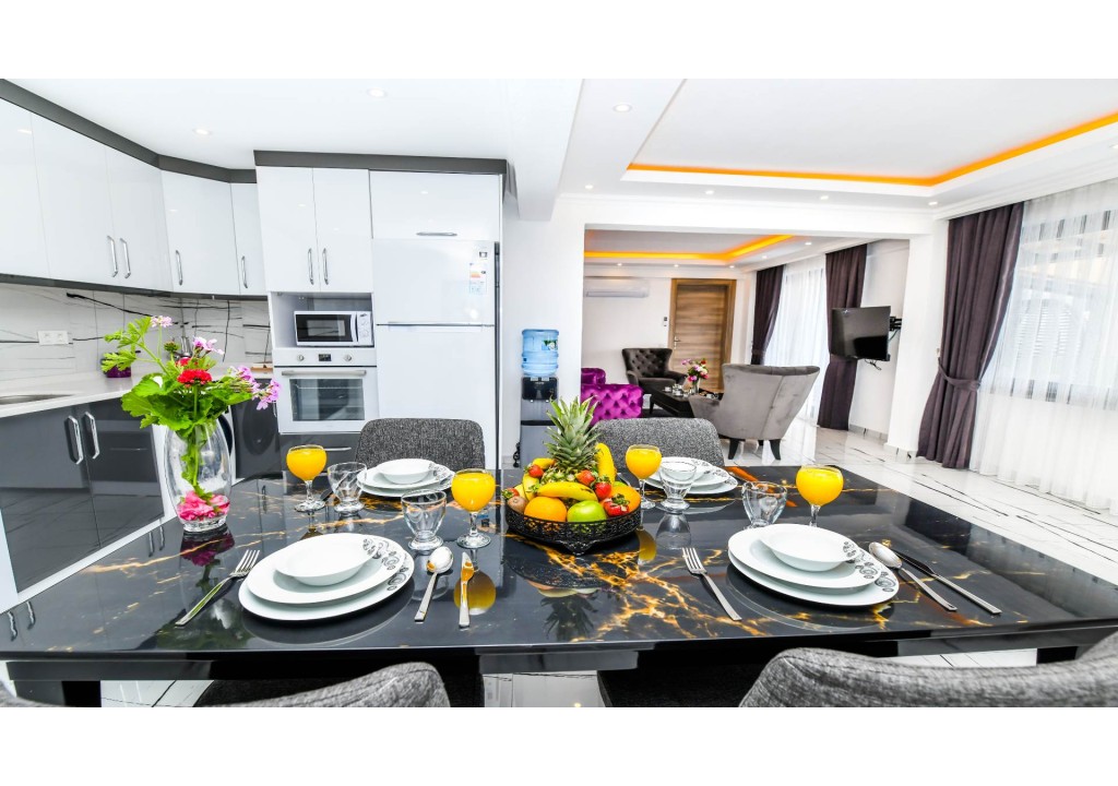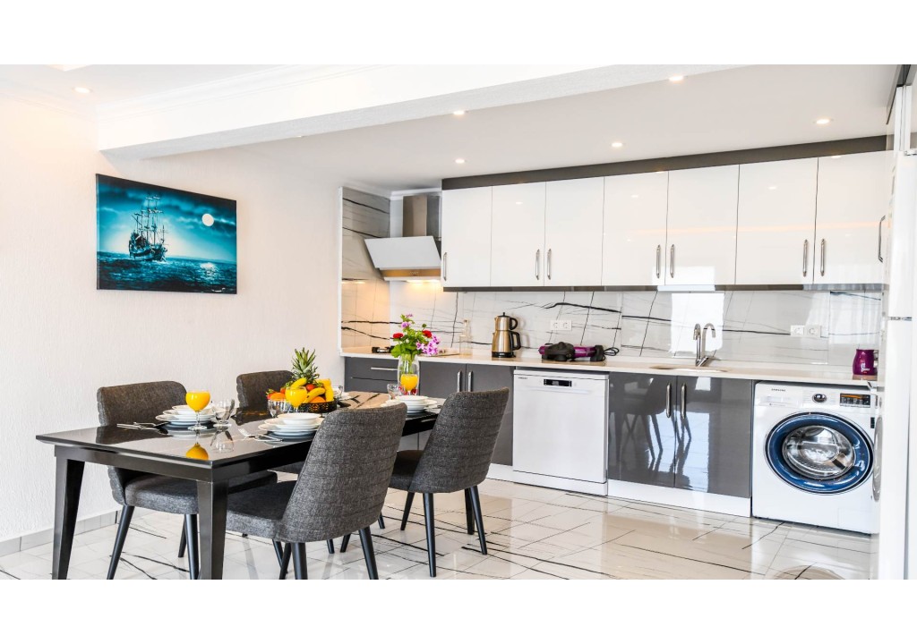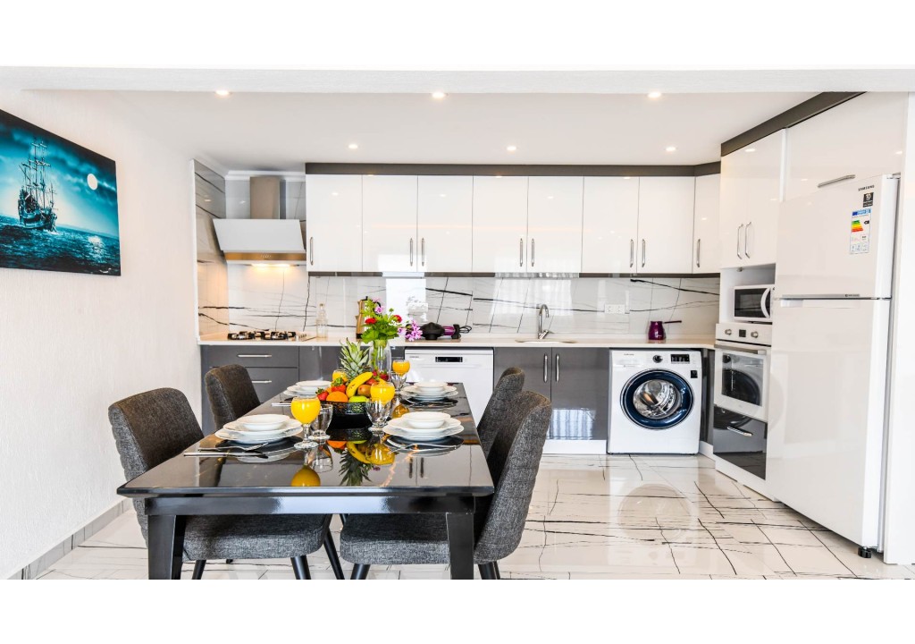 Detayları; Buz dolabı, Bulaşık makinesi, Fırın 4’lü Ocak (ankastre), Mikrodalga fırın, Elektrikli su ısıtıcı, su sebili, 4 kişilik yemek takımı, Tava, Tencereler, Çatal bıçak vb.