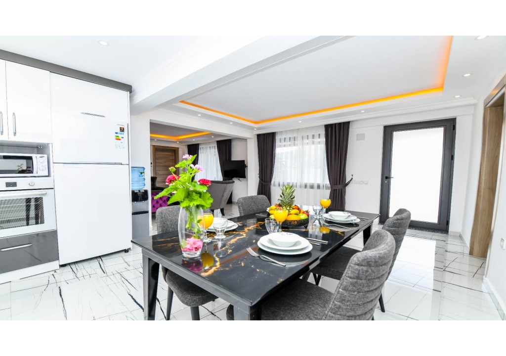 Detayları; Oturma grubu, Uydu TV (LCD), DVD Player, Klima, 4 kişilik yemek masası, Havuz terasına çıkış,
