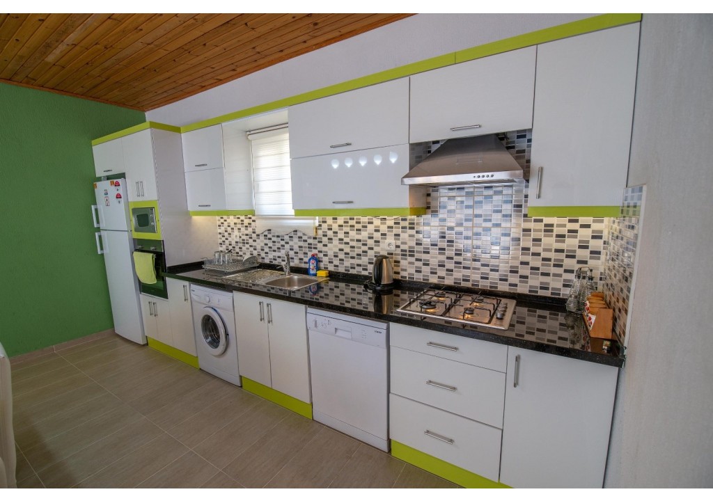 Detayları; Buzdolabı, Bulaşık makinesi, Fırın 4’lü Ocak (ankastre), Mikrodalga fırın, Elektrikli su ısıtıcı, 4 kişilik yemek takımı, Tava, Tencereler, Çatal bıçak vb.