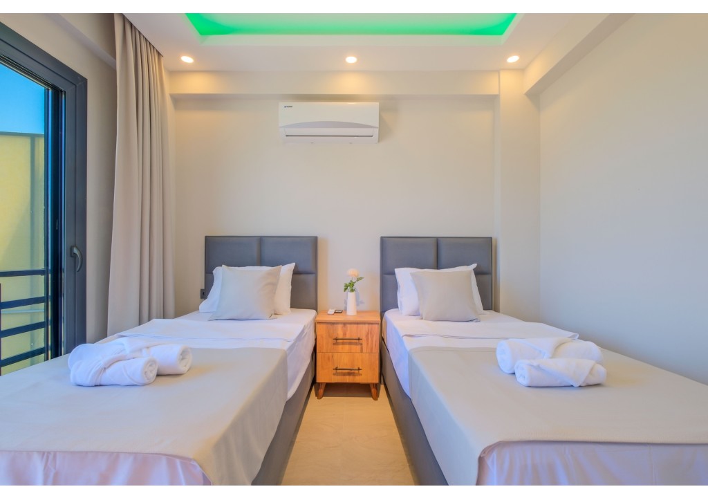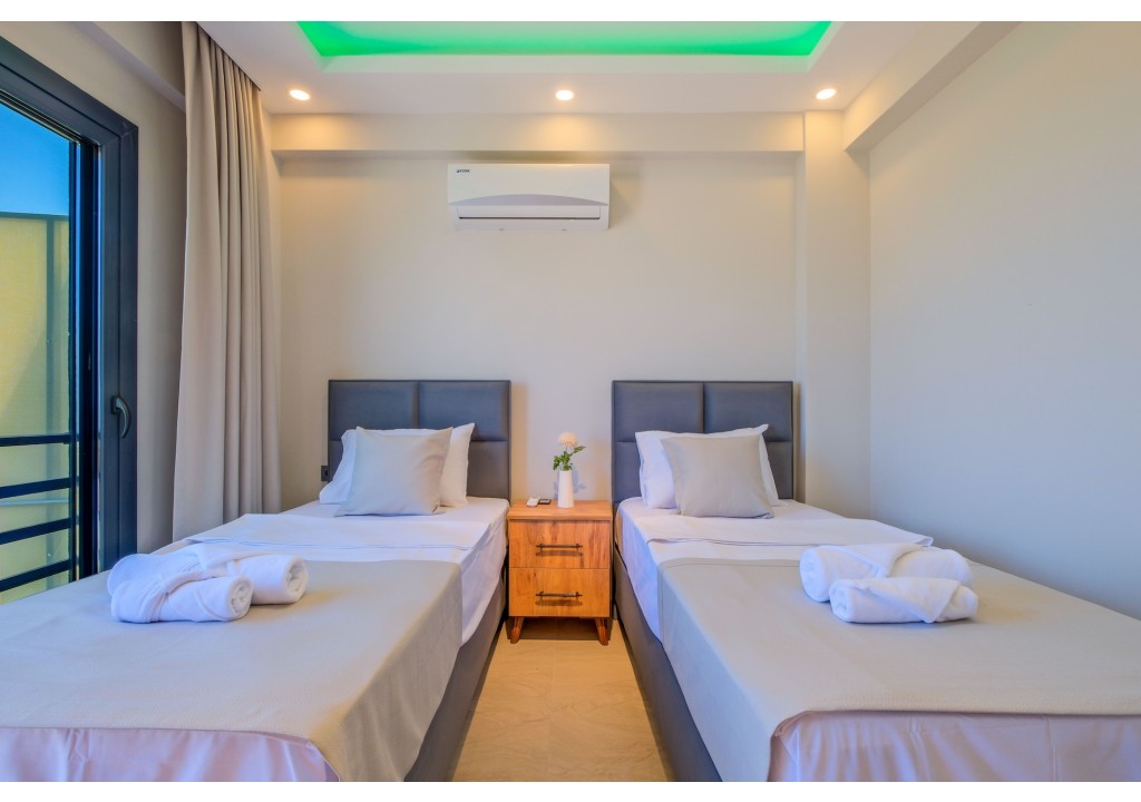 Detayları; İki adet tek kişilik yatak, makyaj masası, komodin, klima, elbise dolabı, banyo ve tuvalet yer almaktadır.
