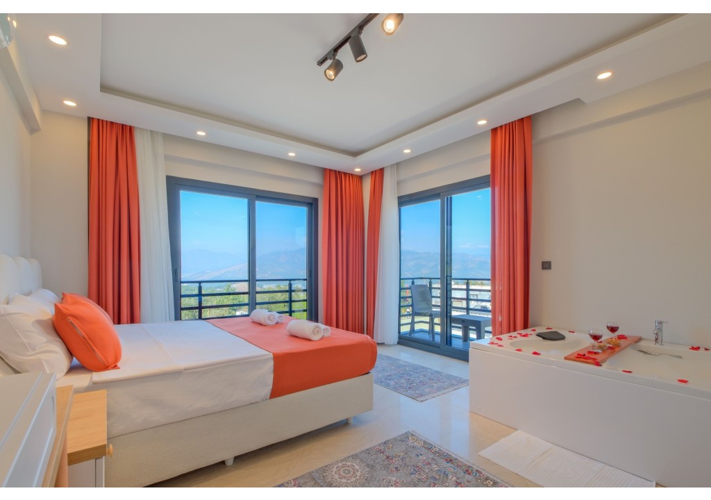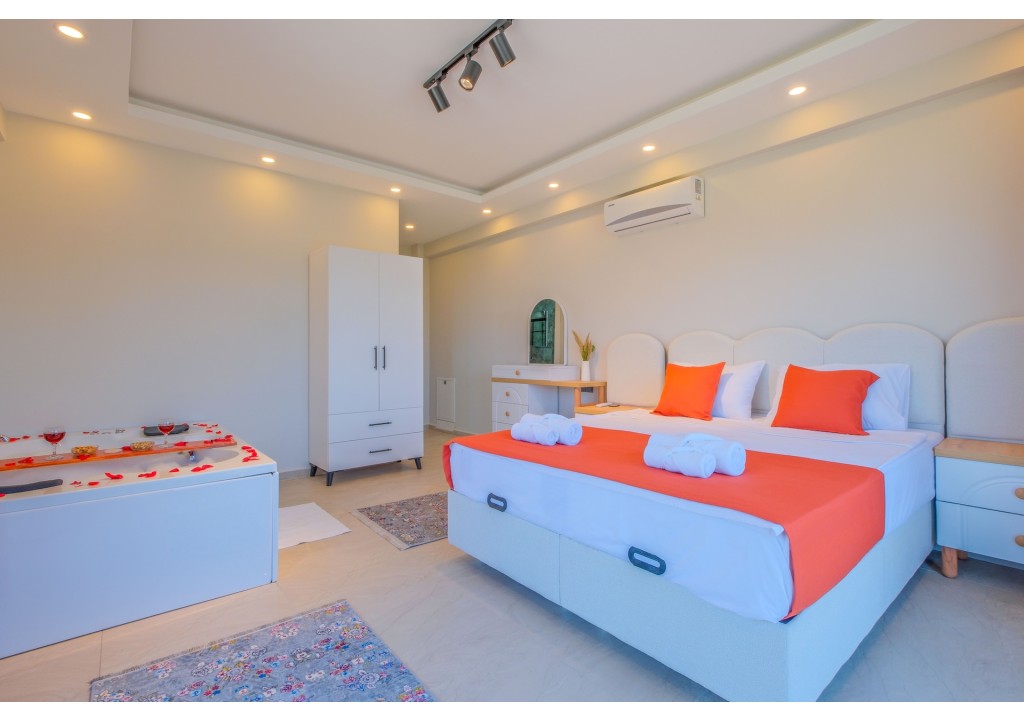 Detayları; Çift kişilik yatak, makyaj masası, komodin, klima, elbise dolabı, jakuzi, banyo ve tuvalet yer almaktadır.