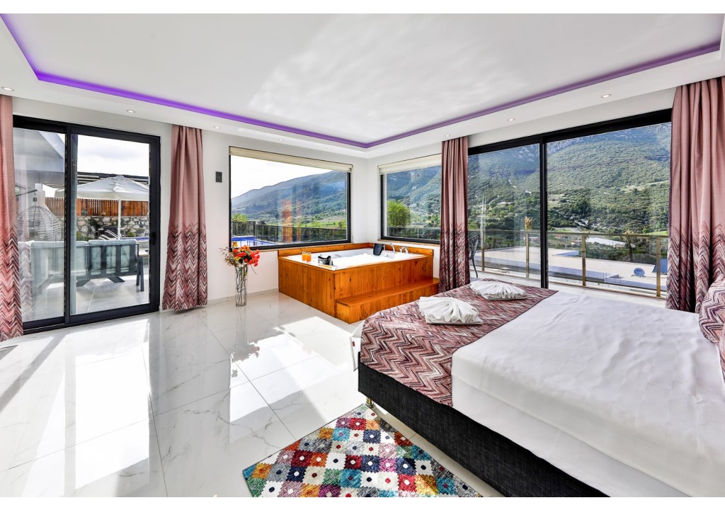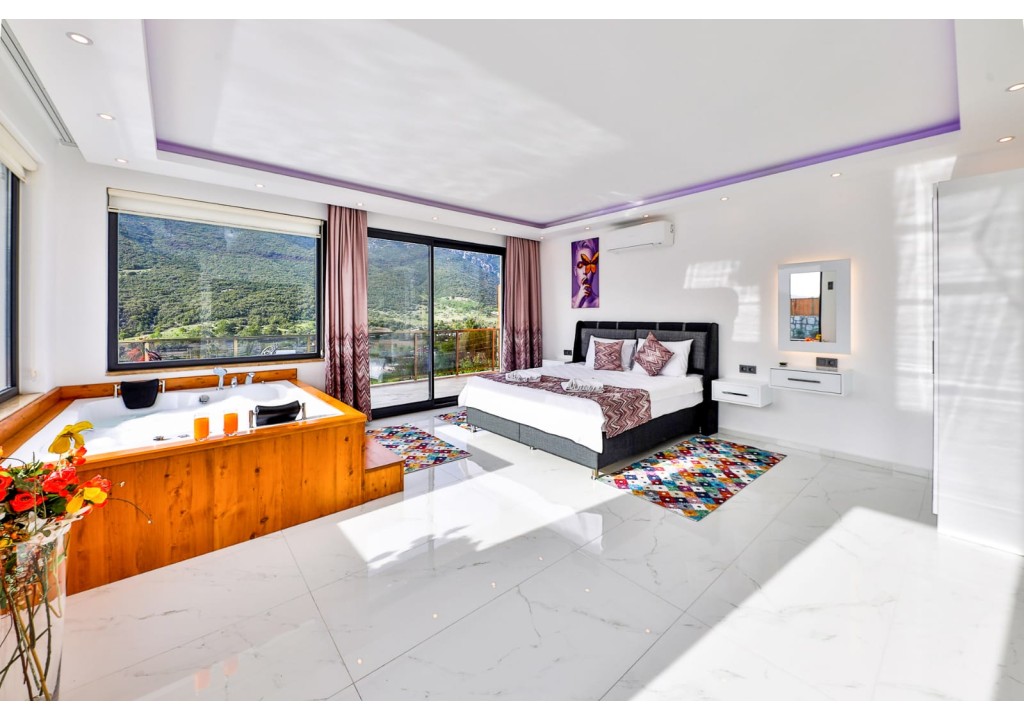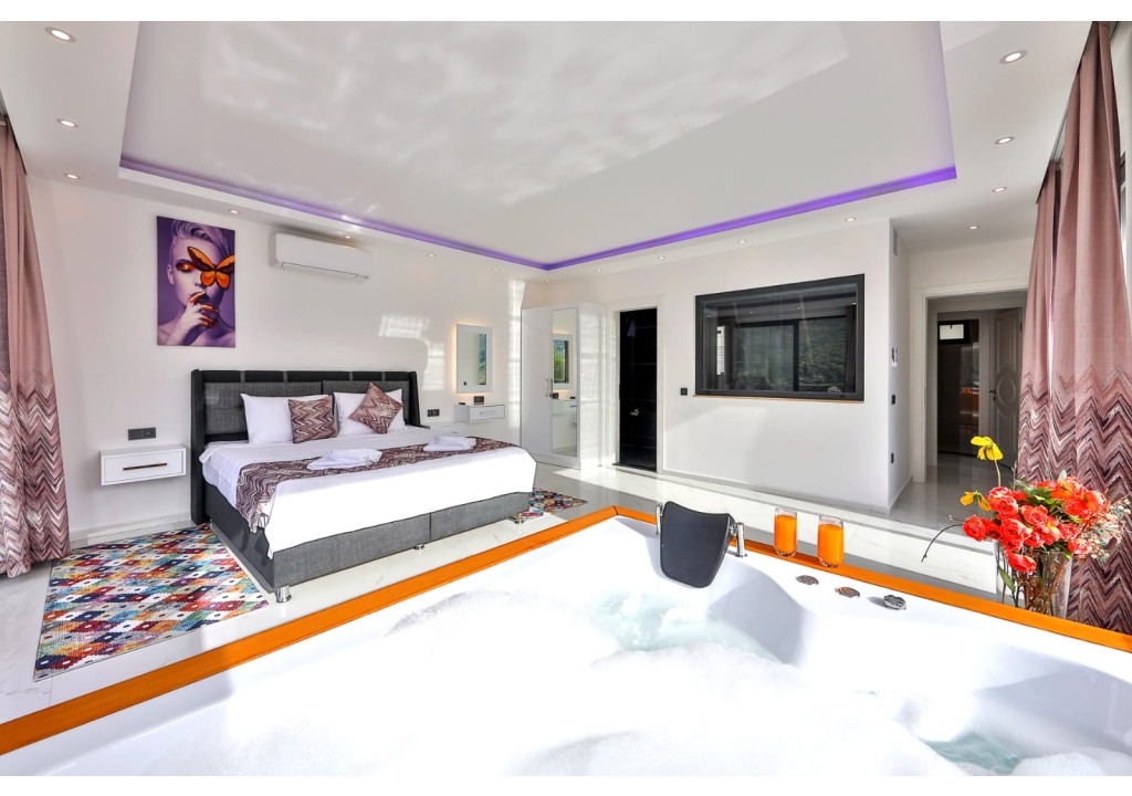 Detayları; Çift kişilik yatak, makyaj masası, komidin, klima, elbise dolabı, jakuzi, banyo ve tuvalet bulunmaktadır.
