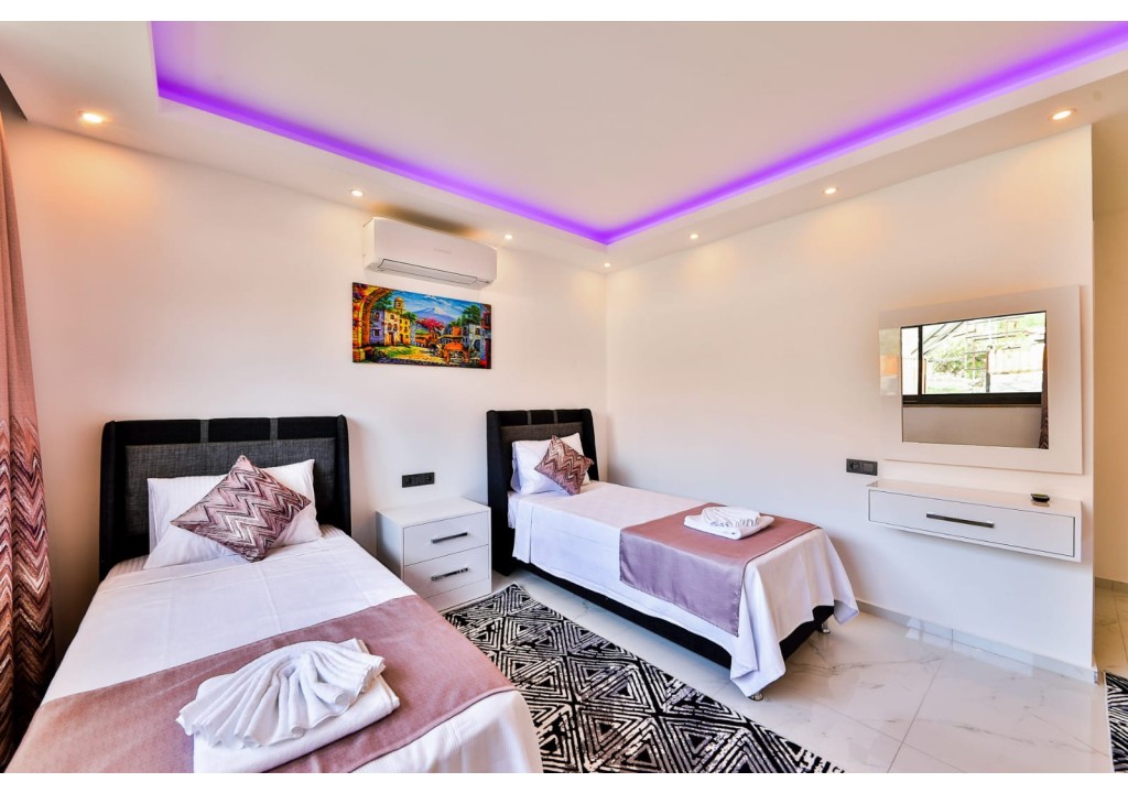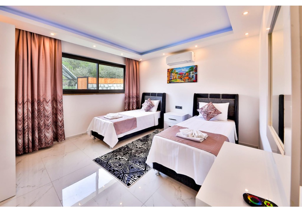 Detayları; İki adet tek kişilik yatak, makyaj masası, komidin, klima, elbise dolabı, banyo ve tuvalet bulunmaktadır.