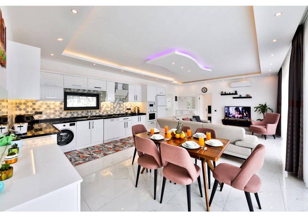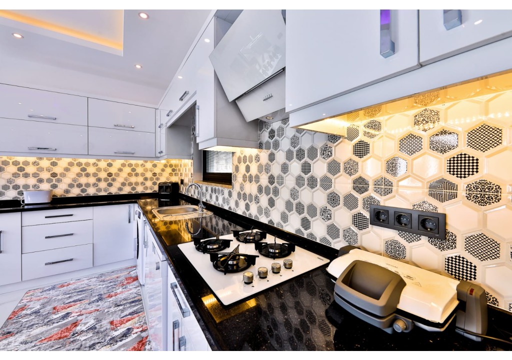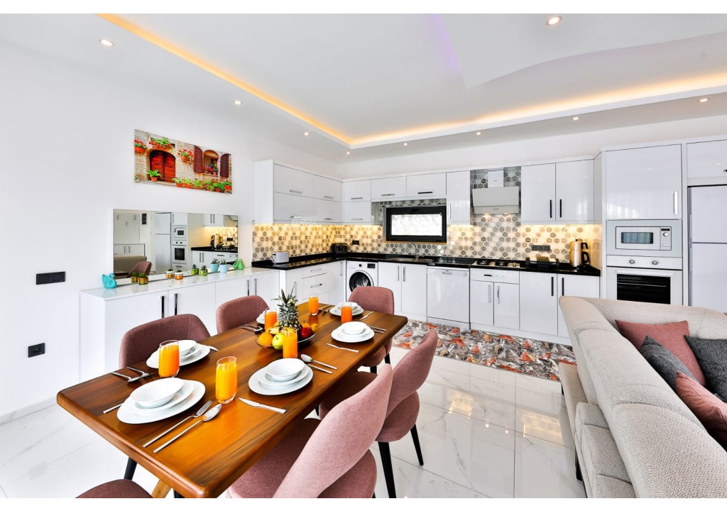 Detayları; Buzdolabı, Bulaşık makinesi, Fırın 4’lü Ocak (ankastre), Mikrodalga fırın, Elektrikli su ısıtıcı, 6 kişilik yemek takımı, Tava, Tencereler, Çatal bıçak vb.
