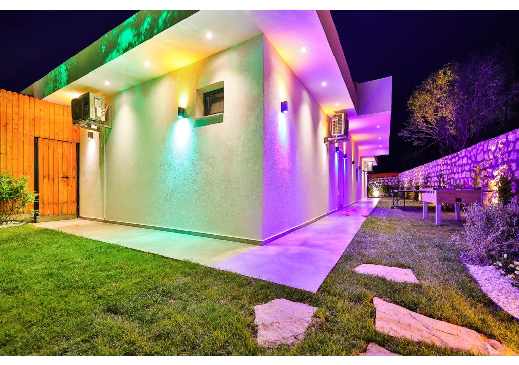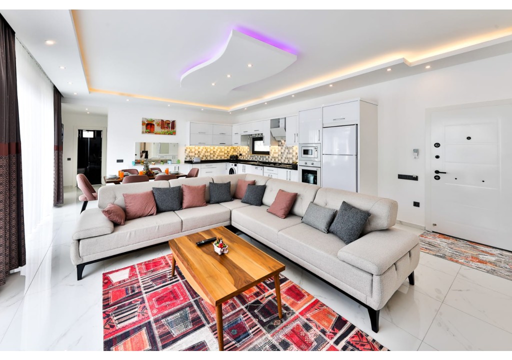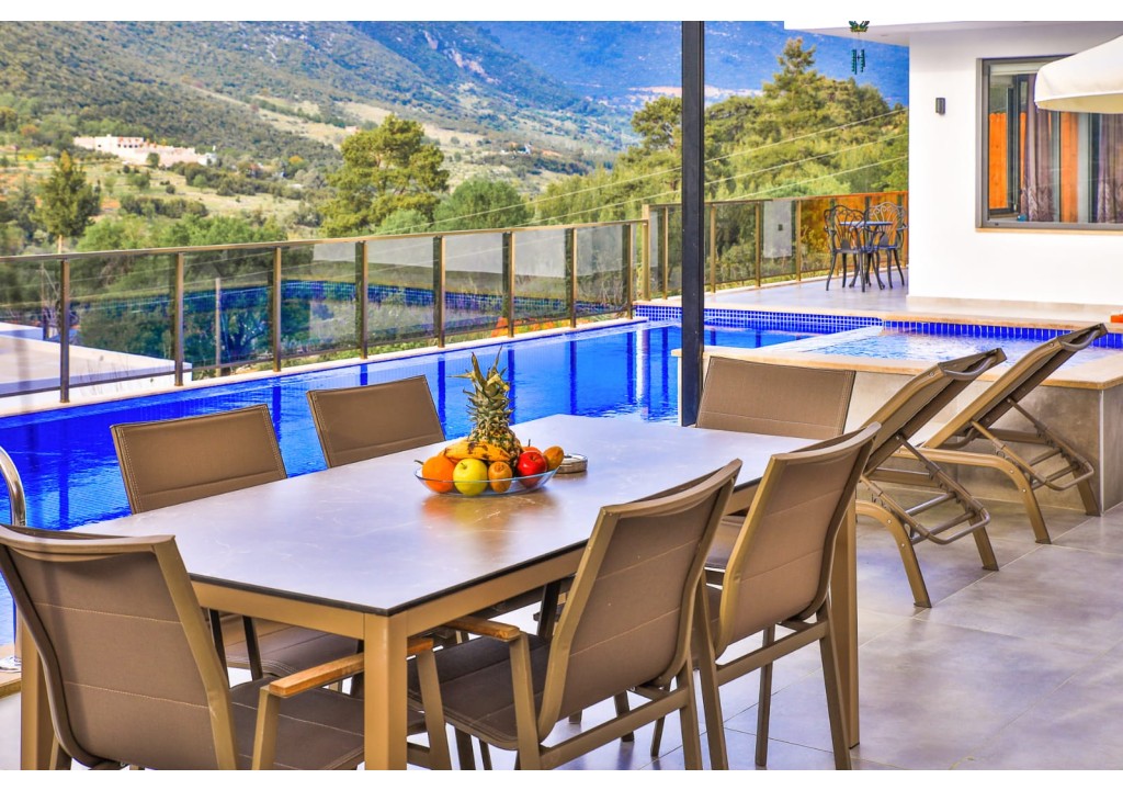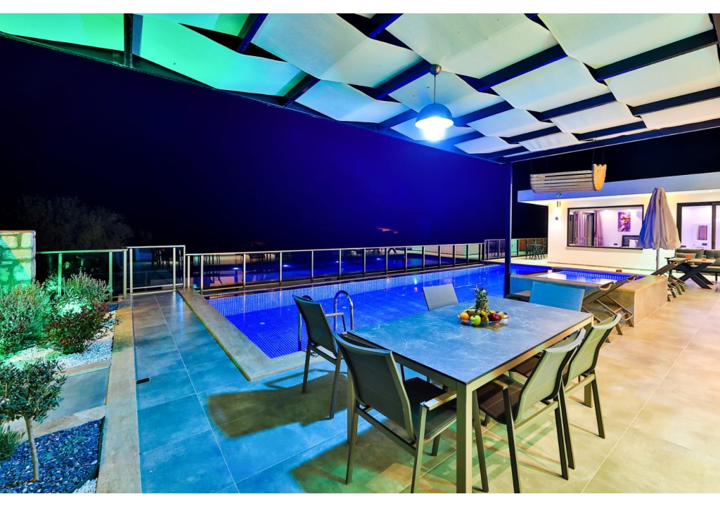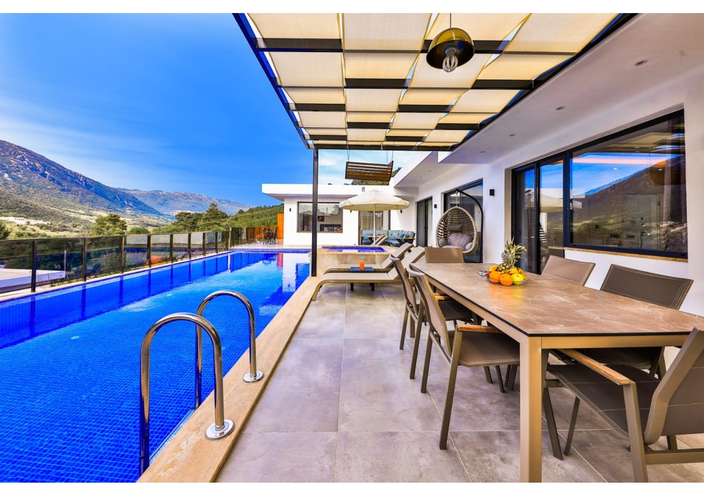 Detayları; Oturma grubu, Uydu TV (LCD), Klima, 8 kişilik yemek masası, Havuz terasına çıkış,