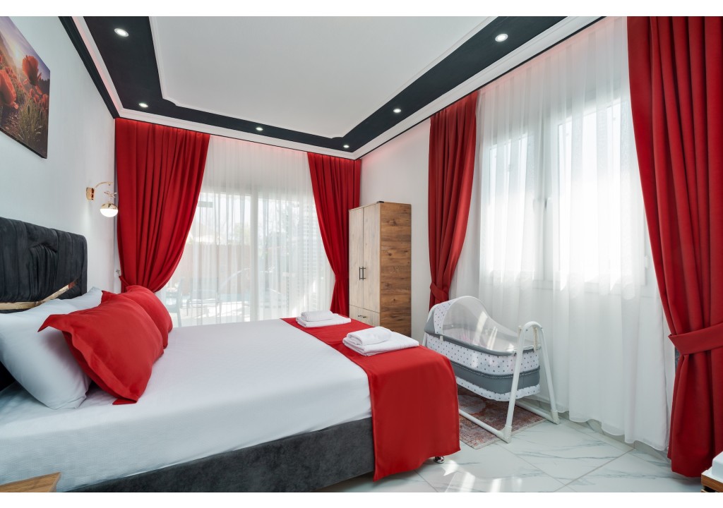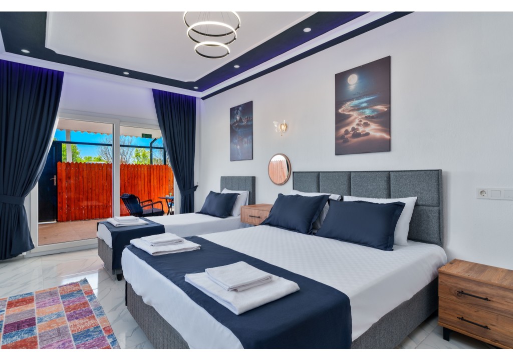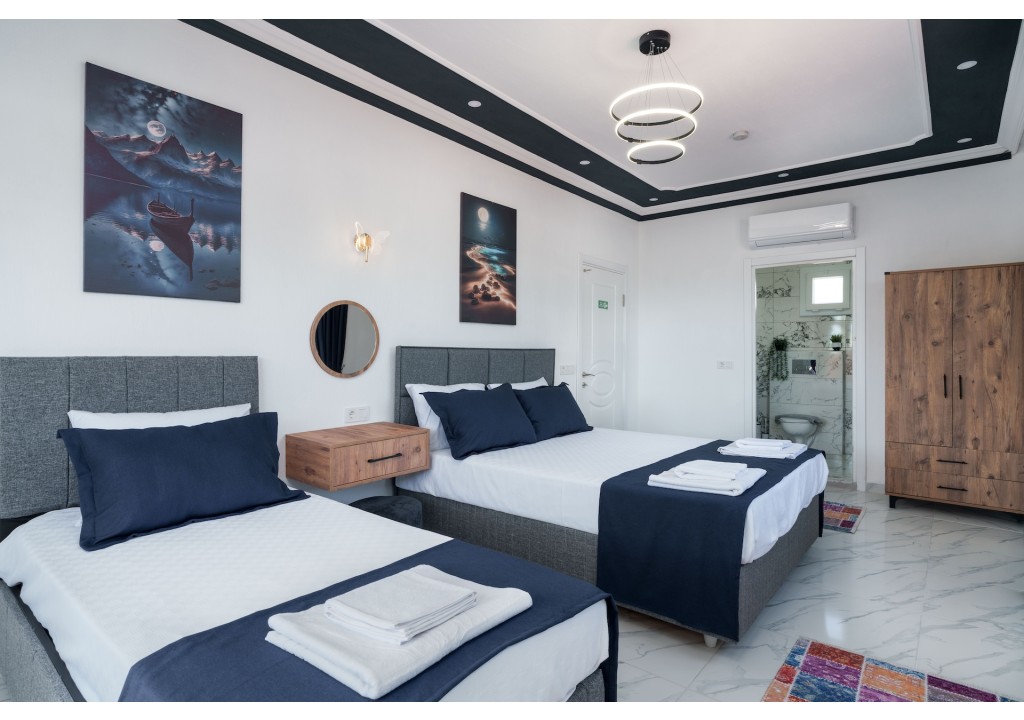 Detayları; Çift kişilik yatak, tek kişilik yatak, makyaj masası, komidin, klima, elbise dolabı, banyo ve tuvalet bulunmaktadır.